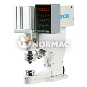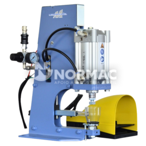 Máquina de pregar molas pneumática com painel eletrónico para a colocação de molas, botões e ilhós