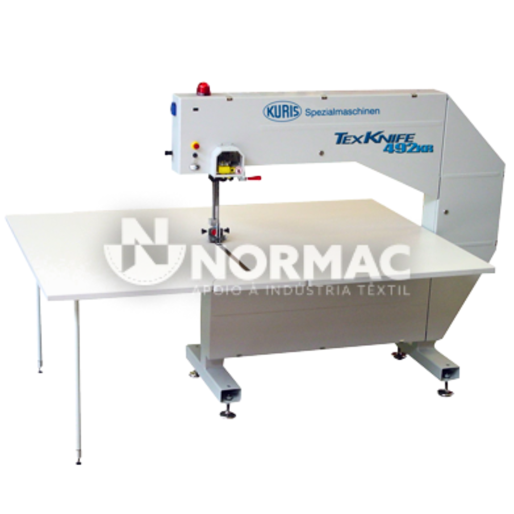 A máquina, serra de fita da Kuris é ideal para cortes finos de tecidos, malhas, têxteis industriais e materiais especiais. Máquina serra de fita muito rápida e flexível.
