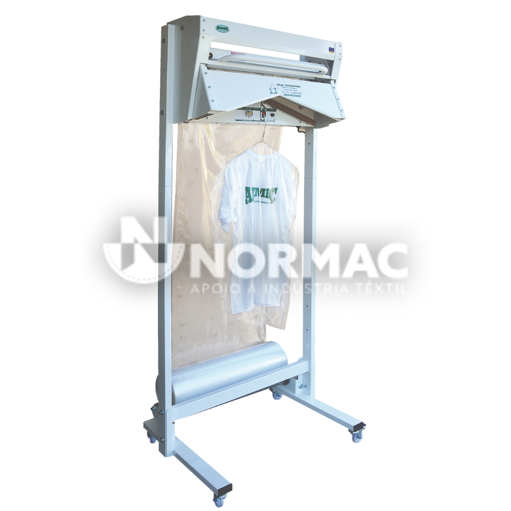 Máquina de Embalar manual com soldadura com corte oblíquo, com pé incorporado e suporte para rolo na parte inferior e com a possibilidade de colocar manga de 400 a 620 mm.