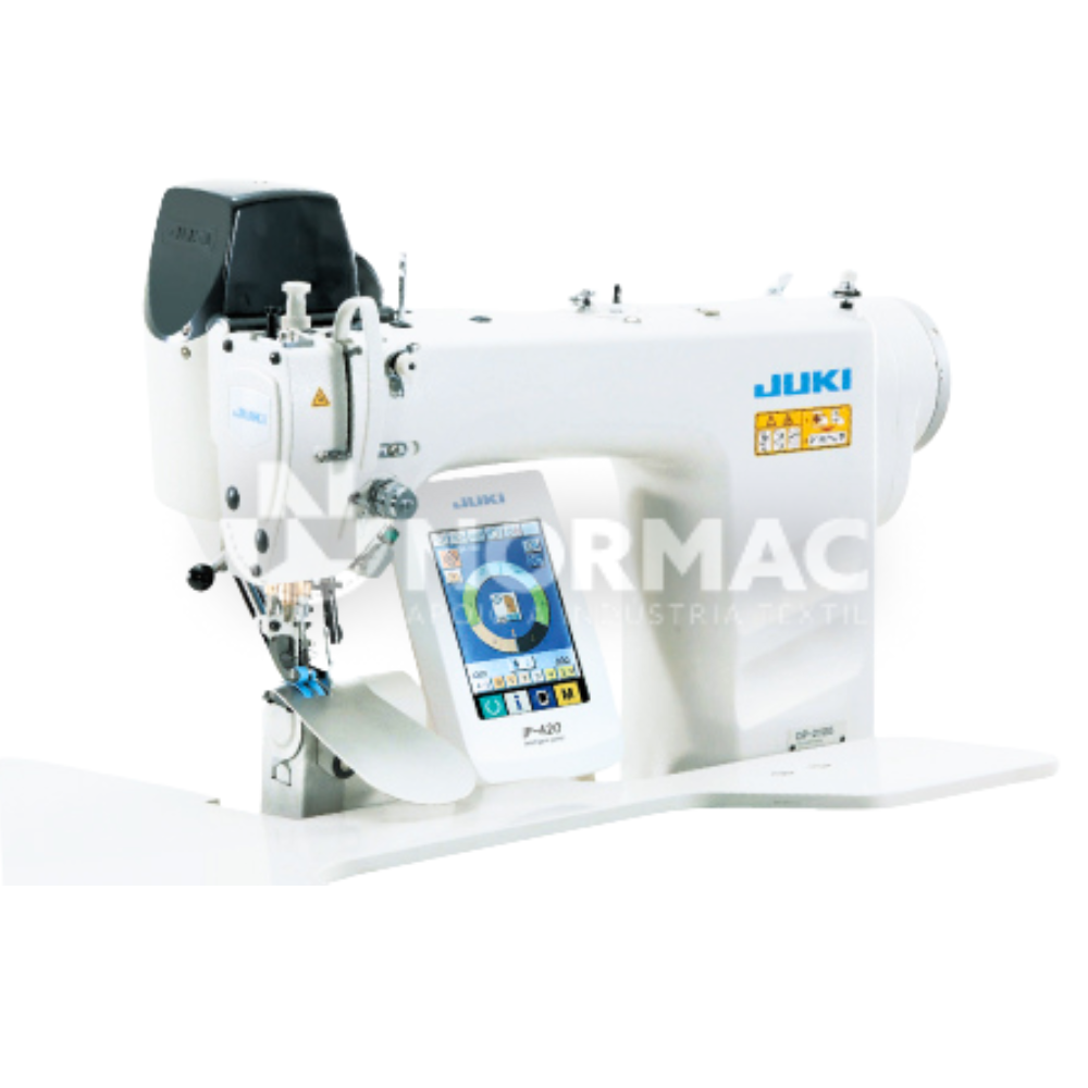 A Juki DP-2100 é uma máquina de costura especialmente desenhada para trabalhar costura de mangas, com tecnologia de cabeça seca que elimina a necessidade de lubrificação, evitando manchas de óleo e facilitando e manutenção.