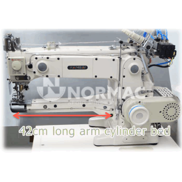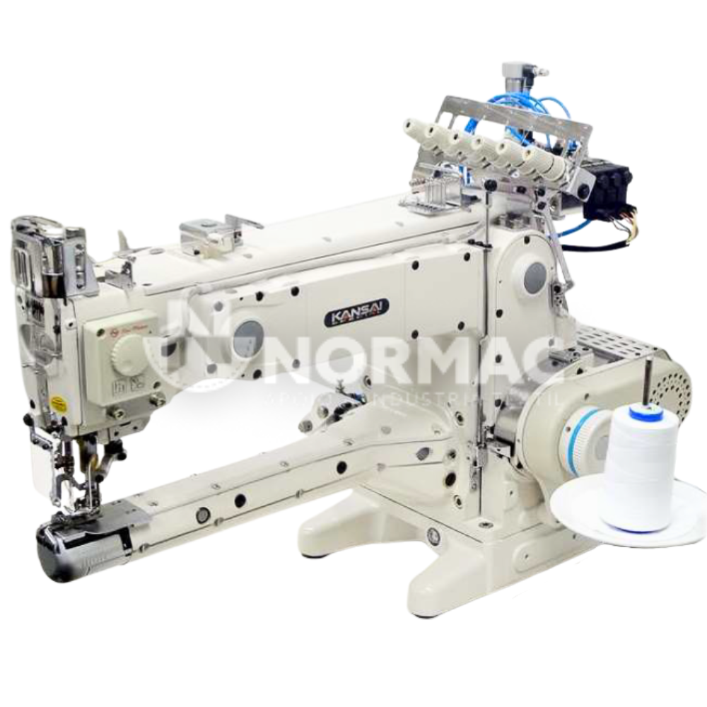 Máquina de Costura de Recobrir 3 agulhas com recobridor superior braço frontal extra longo