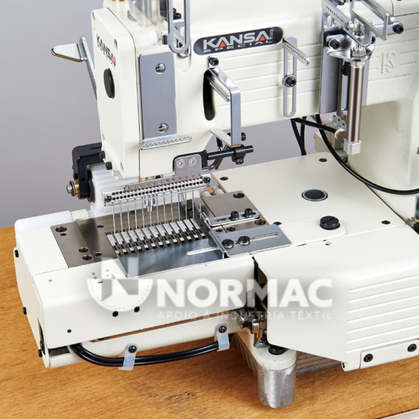 Máquina de Costura de Ponto de Cadeia Duplo de 12 agulhas, com 25 furos para agulha, de cama cilíndrica, com alimentador especial e dispositivo de corte de linha.