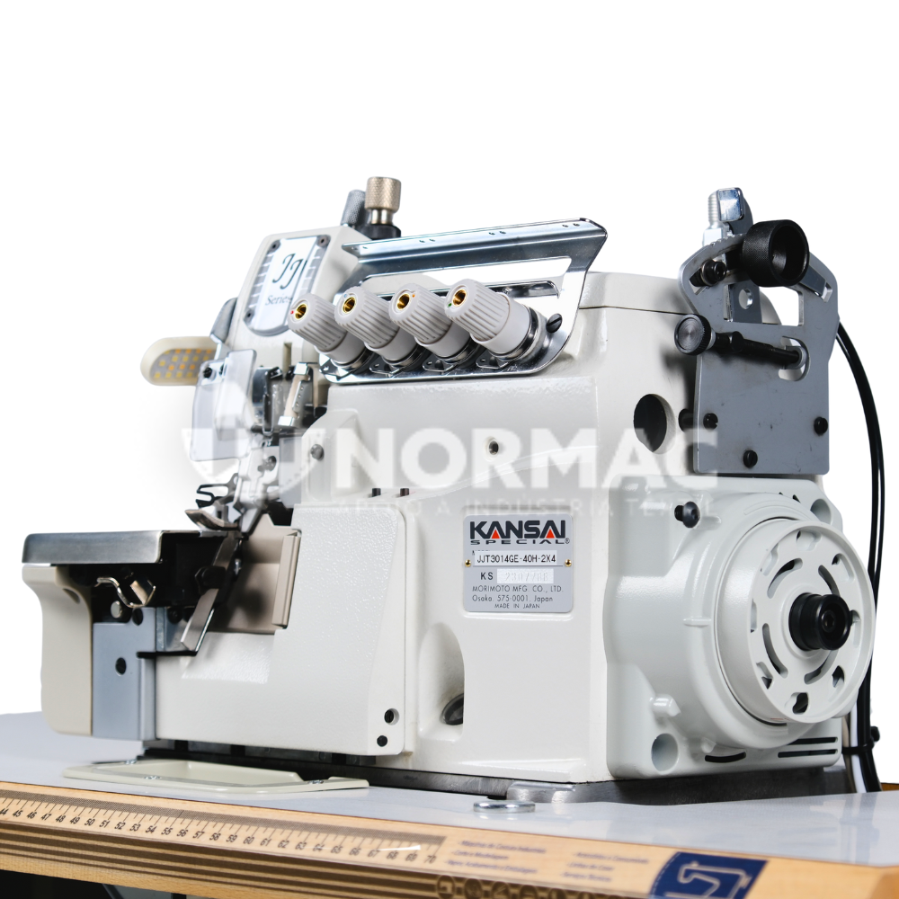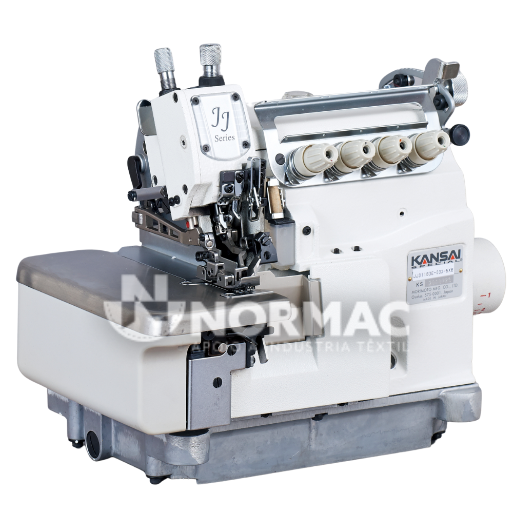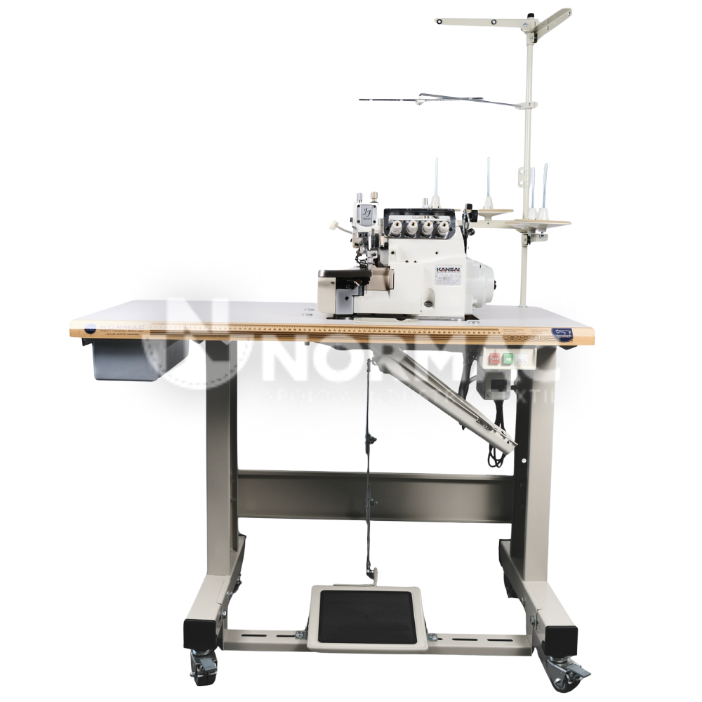 Máquina de Costura de Corte e Cose de 2 agulhas e 4 fios, para materiais pesados equipada com arrasto superior e inferior