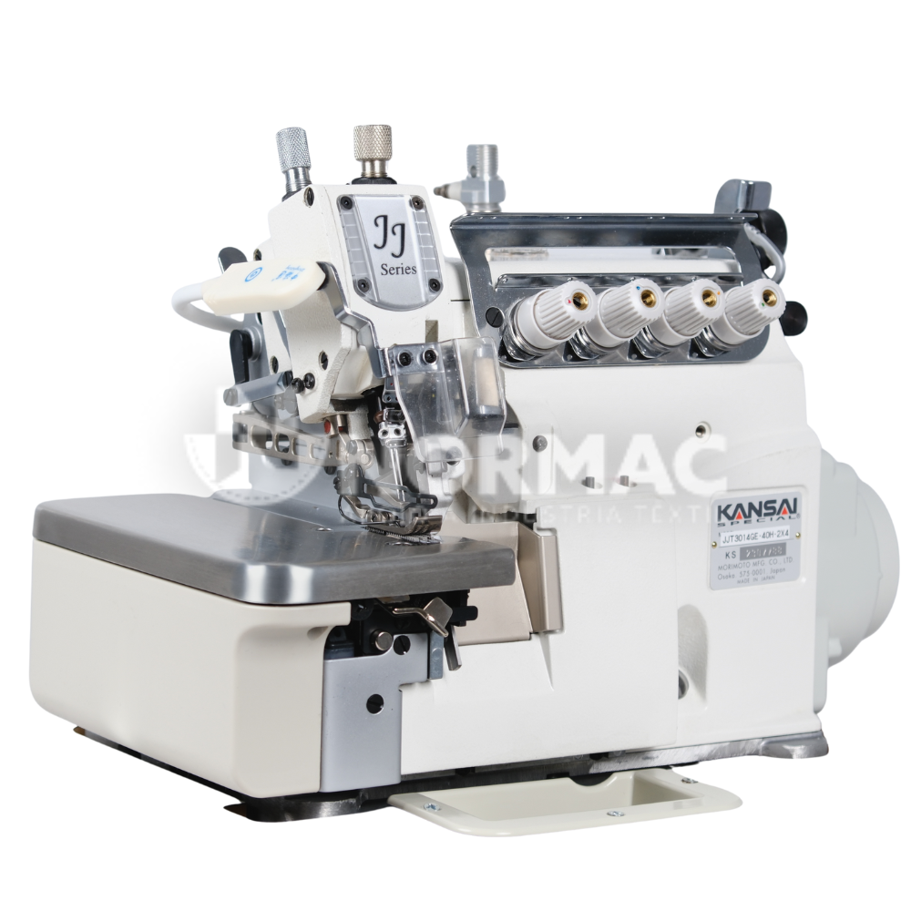 Máquina de Costura de Corte e Cose de 2 agulhas e 4 fios, equipada com arrasto superior e inferior