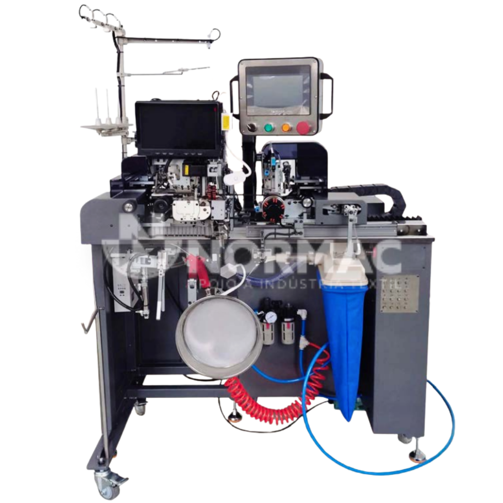 Máquina de Costura Automática para aplicar elástico em roupa interior masculina.