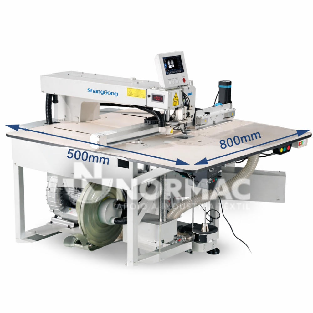 Modelo Grande: Máquina de Costura Programável projetada para máxima eficiência, esta máquina oferece uma ampla área de costura de 800 mm por 500 mm, garantindo liberdade total de movimento. Conta com uma grande área de sucção de 500 × 350 mm e potência de laser de 110 W, proporcionando precisão e produtividade superiores em cada operação.
