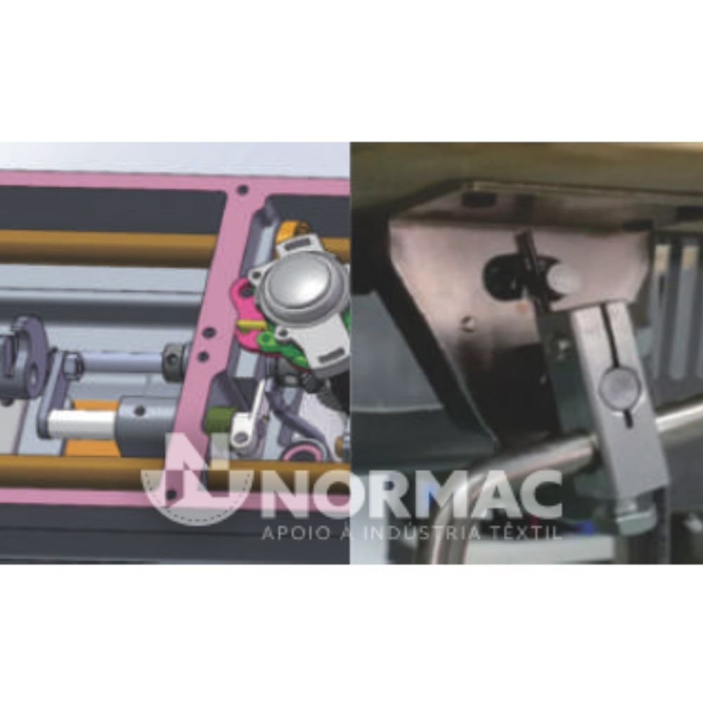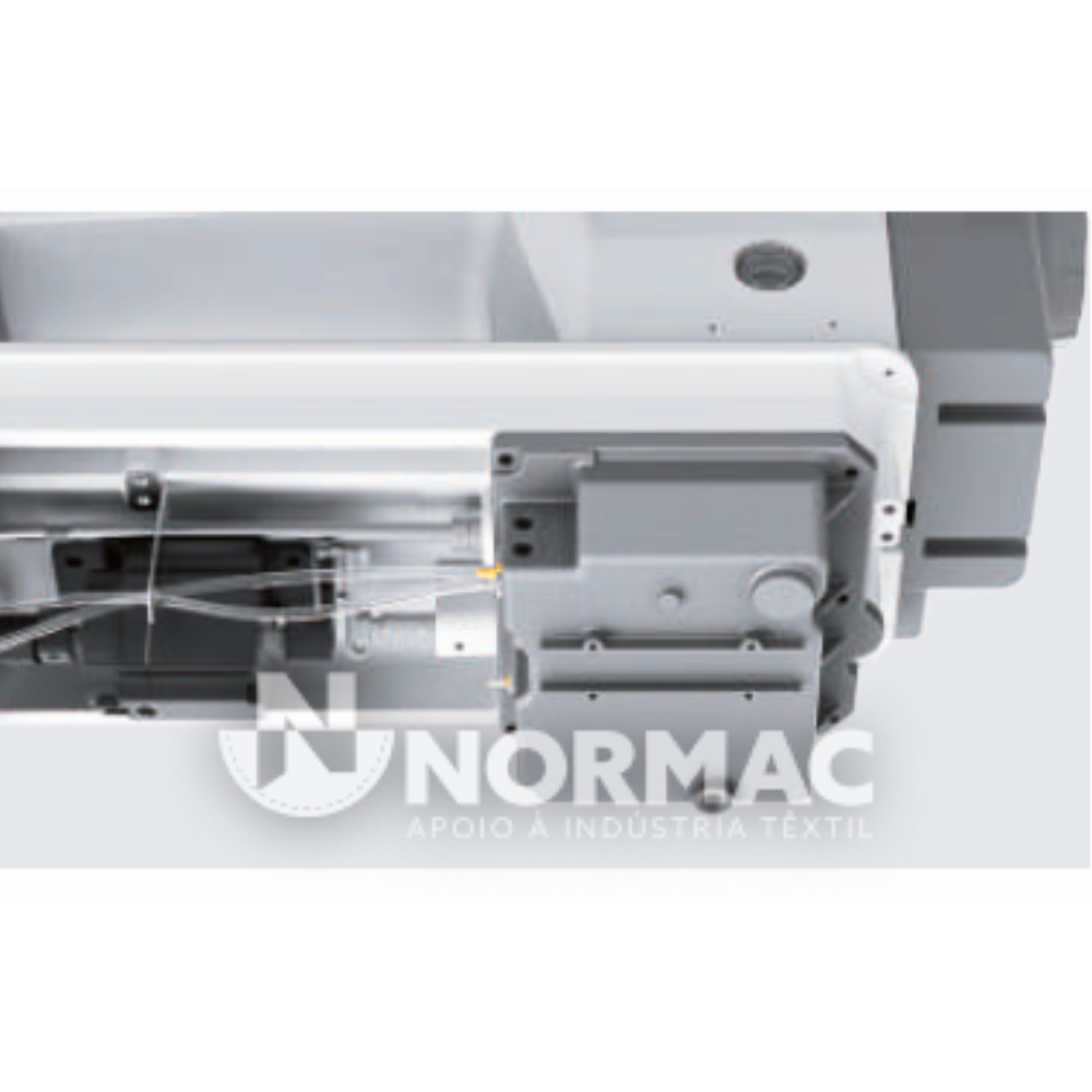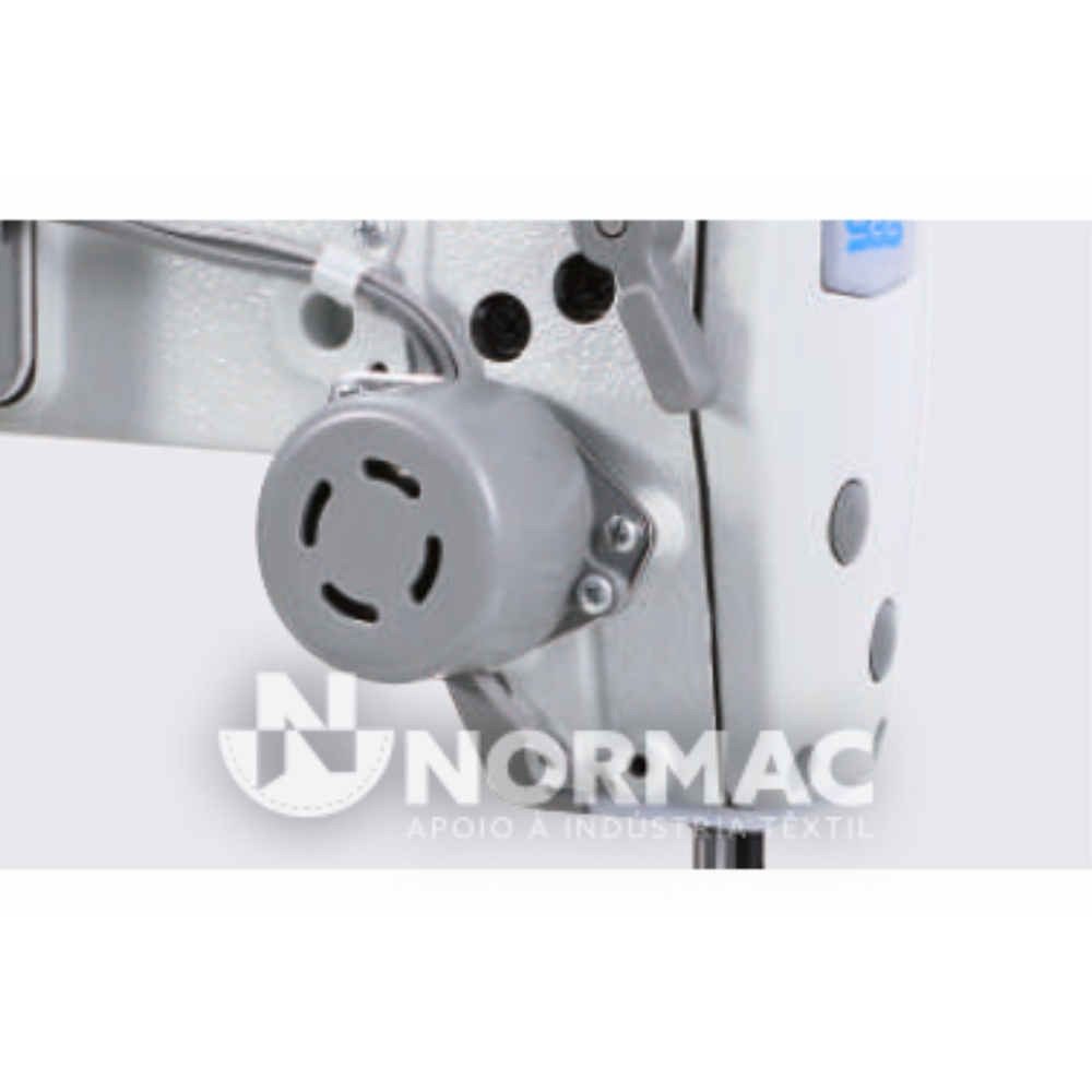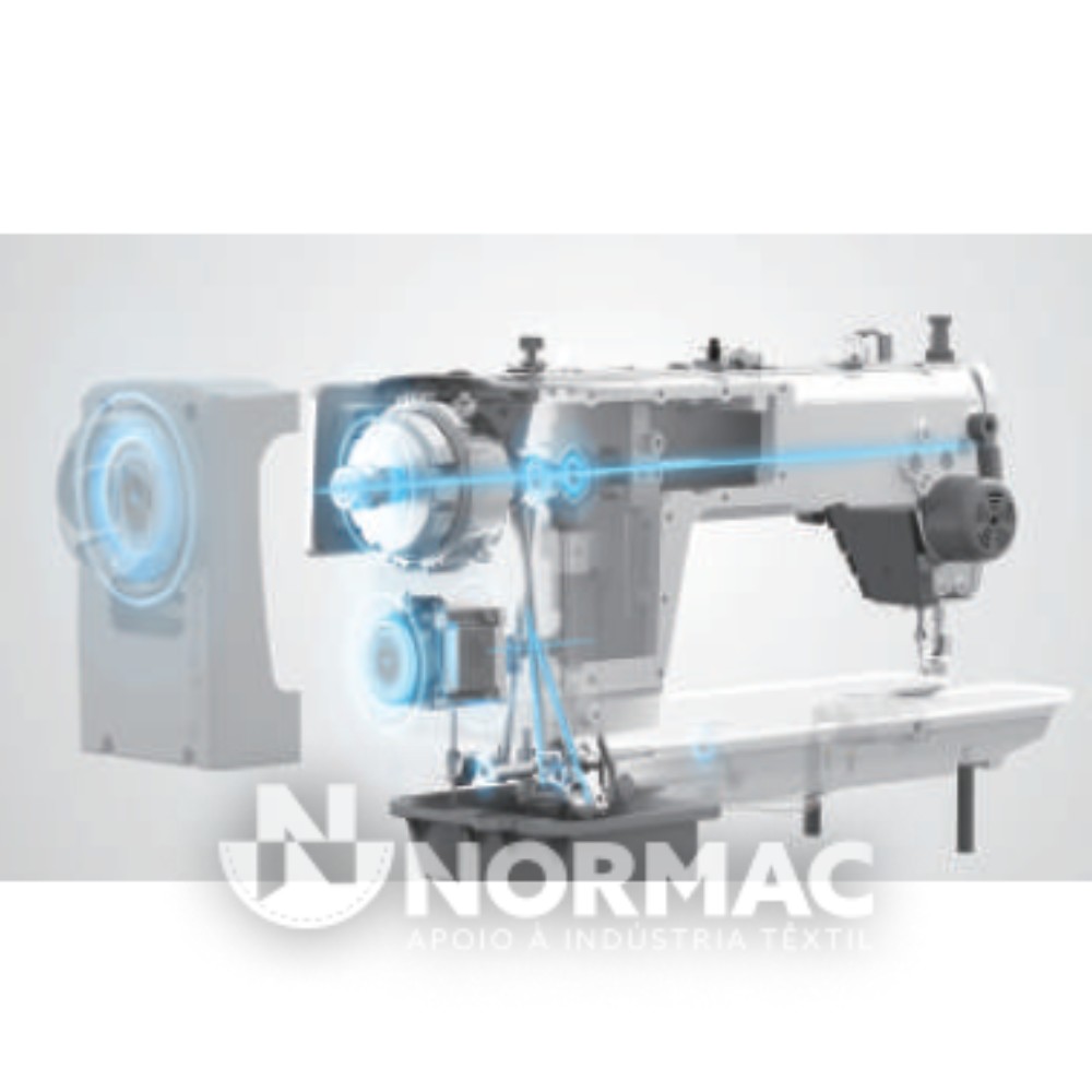 Equipada com acionamento direto e controlo eletrônico integrado, incorpora um sistema completo baseado em motores de passo, responsável pelo controlo do ponto da agulha, levantamento do calcador e corte de linha. Este conjunto tecnológico permite uma operação extremamente precisa e consistente.