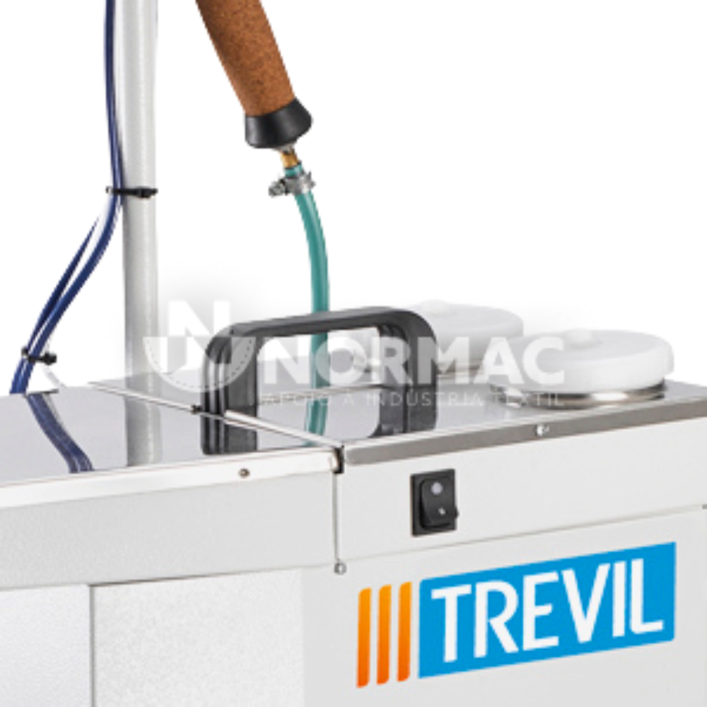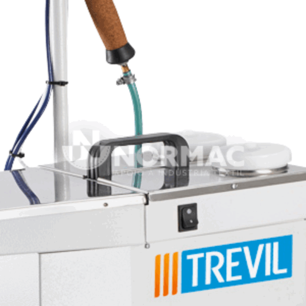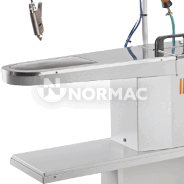 Pode ser colocada sobre uma mesa ou em seu suporte opcional com prateleira embutida para produtos de remoção de manchas.