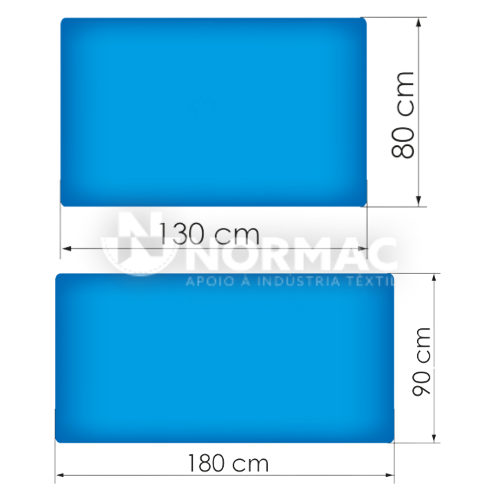 Mesa de engomar retangular com aspiração, superfície aquecida e ajuste de altura para uso profissional