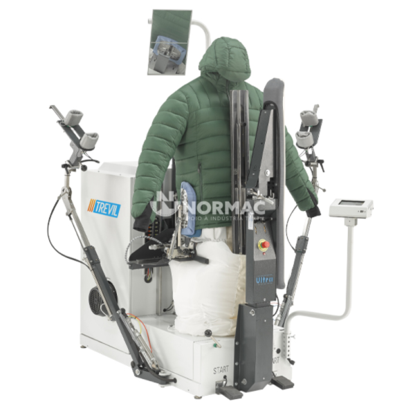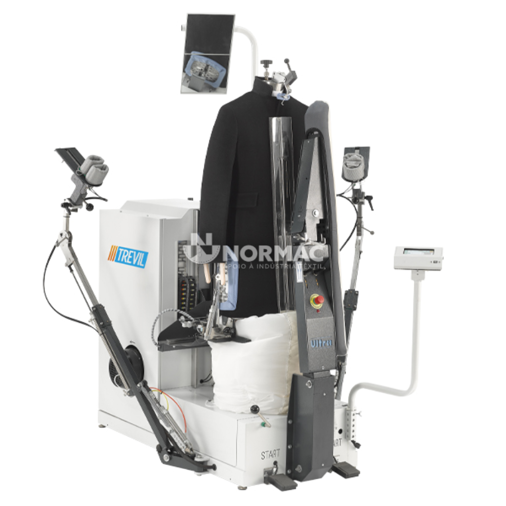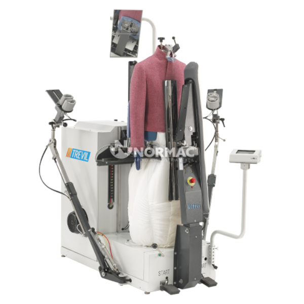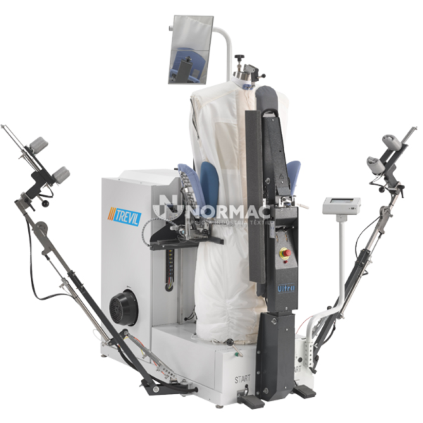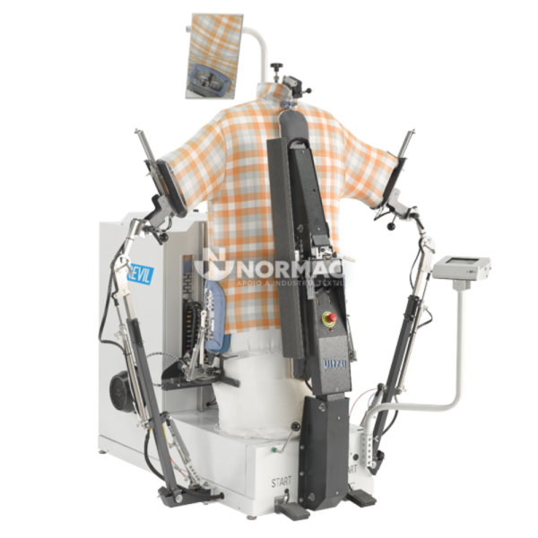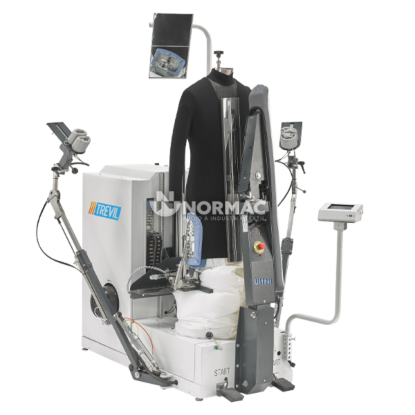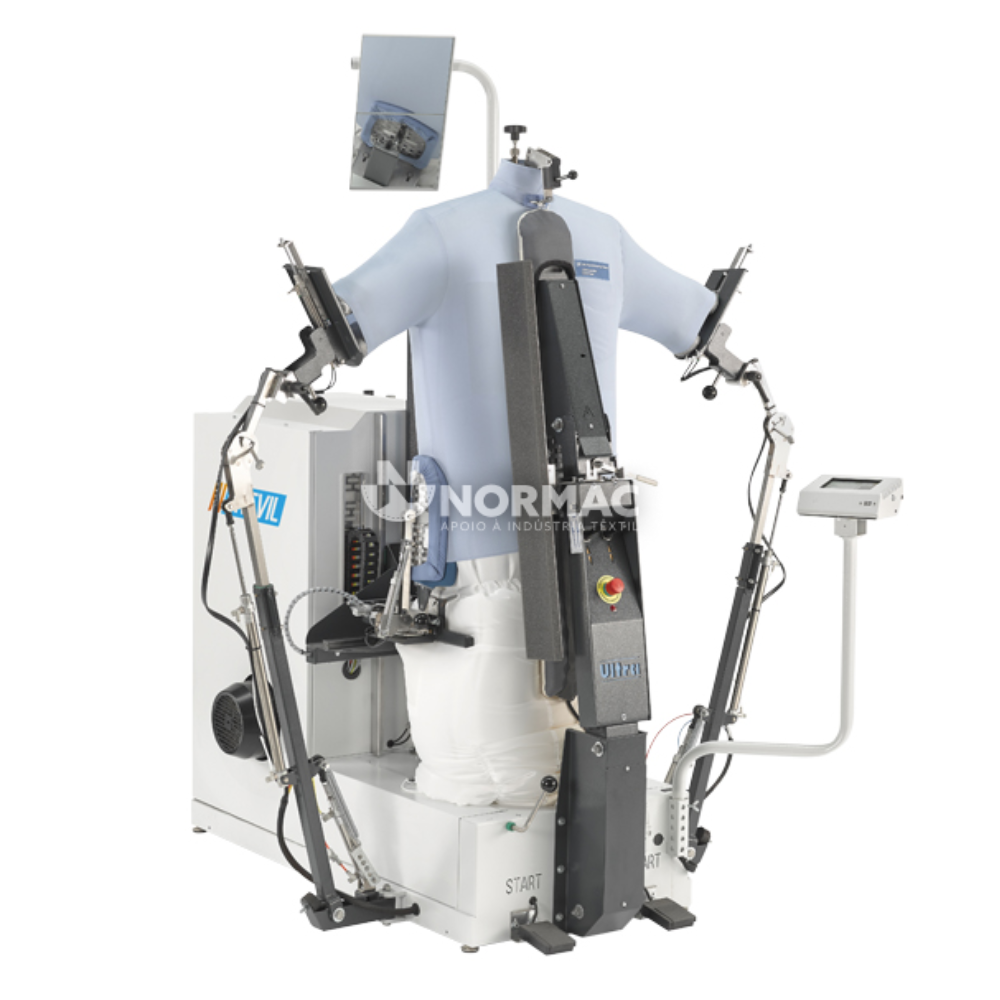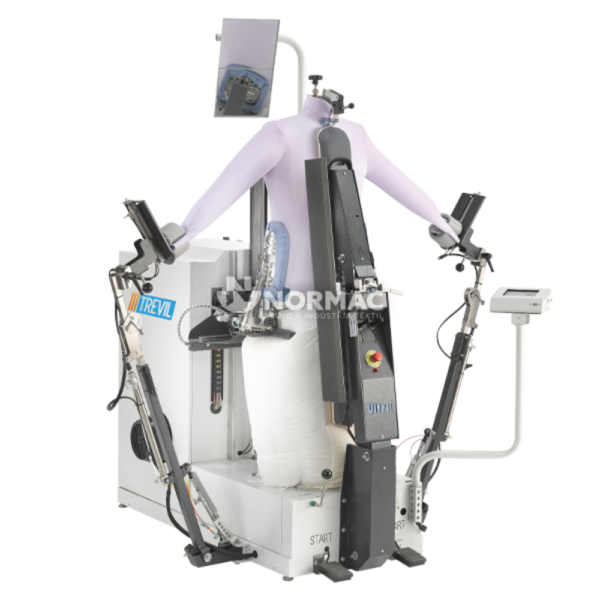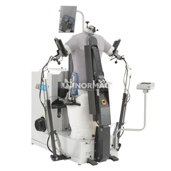 - Combina as funcionalidades de um manequim de forma tradicional, um manequim de forma com tensão para casacos e uma unidade de camisa;