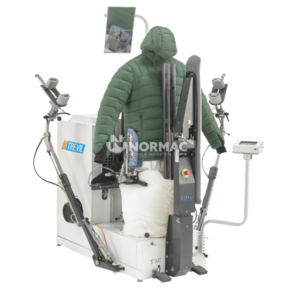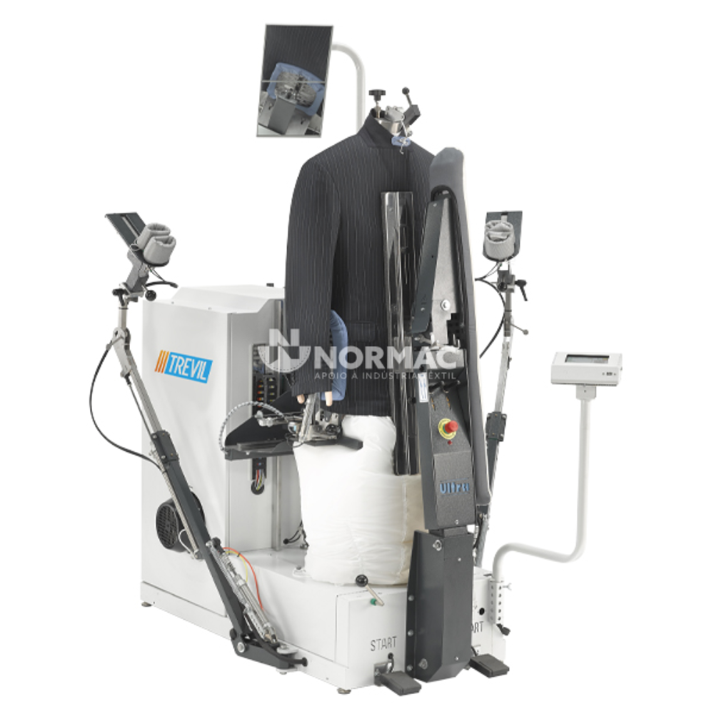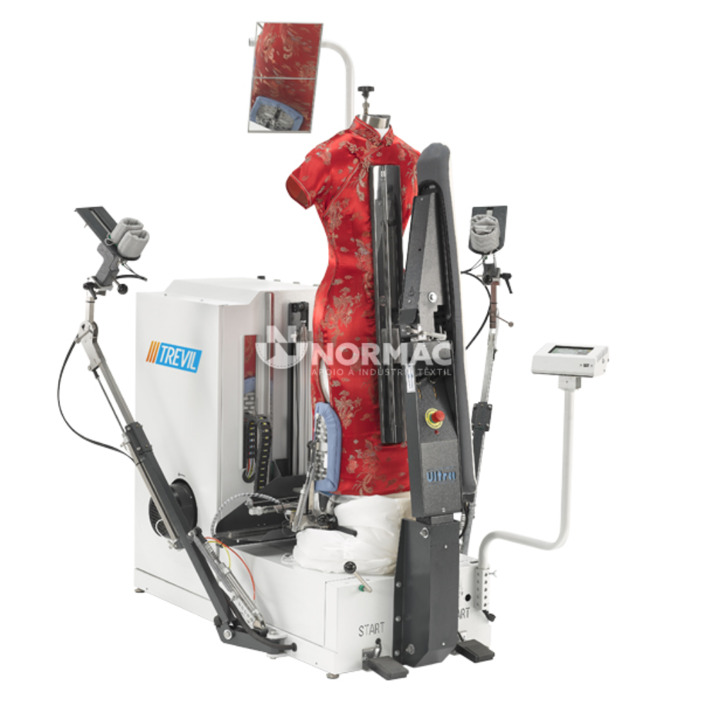 - É o único manequim de forma com tensão equipado com a exclusiva placa frontal rotativa da Trevil. O operador pode alternar entre a placa aquecida e não aquecida num único movimento, sem esforço;