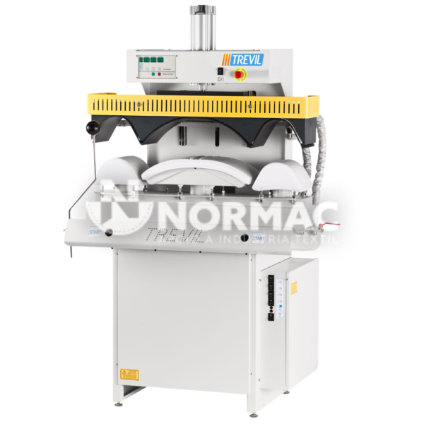 O Trevilpress CP é uma prensa compacta para punhos e colarinho com alto desempenho, destinada a ser utilizada em conjunto com um manequim de camisas, disponível com ou sem caldeira.