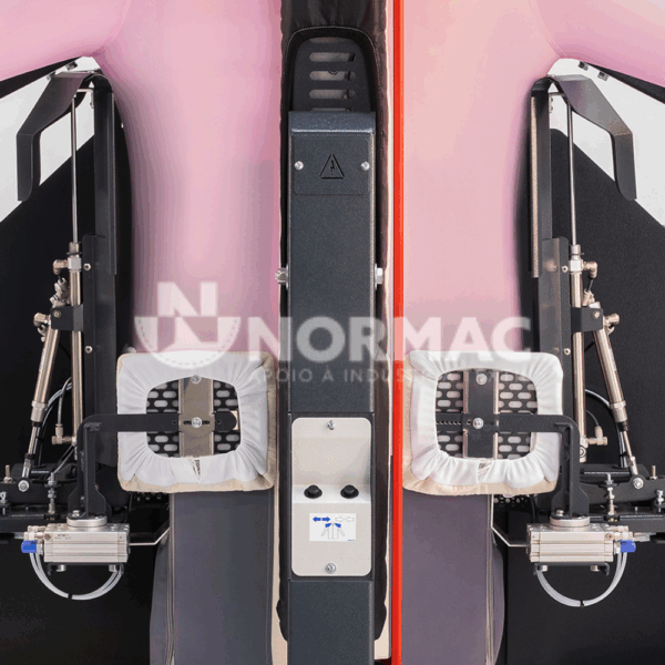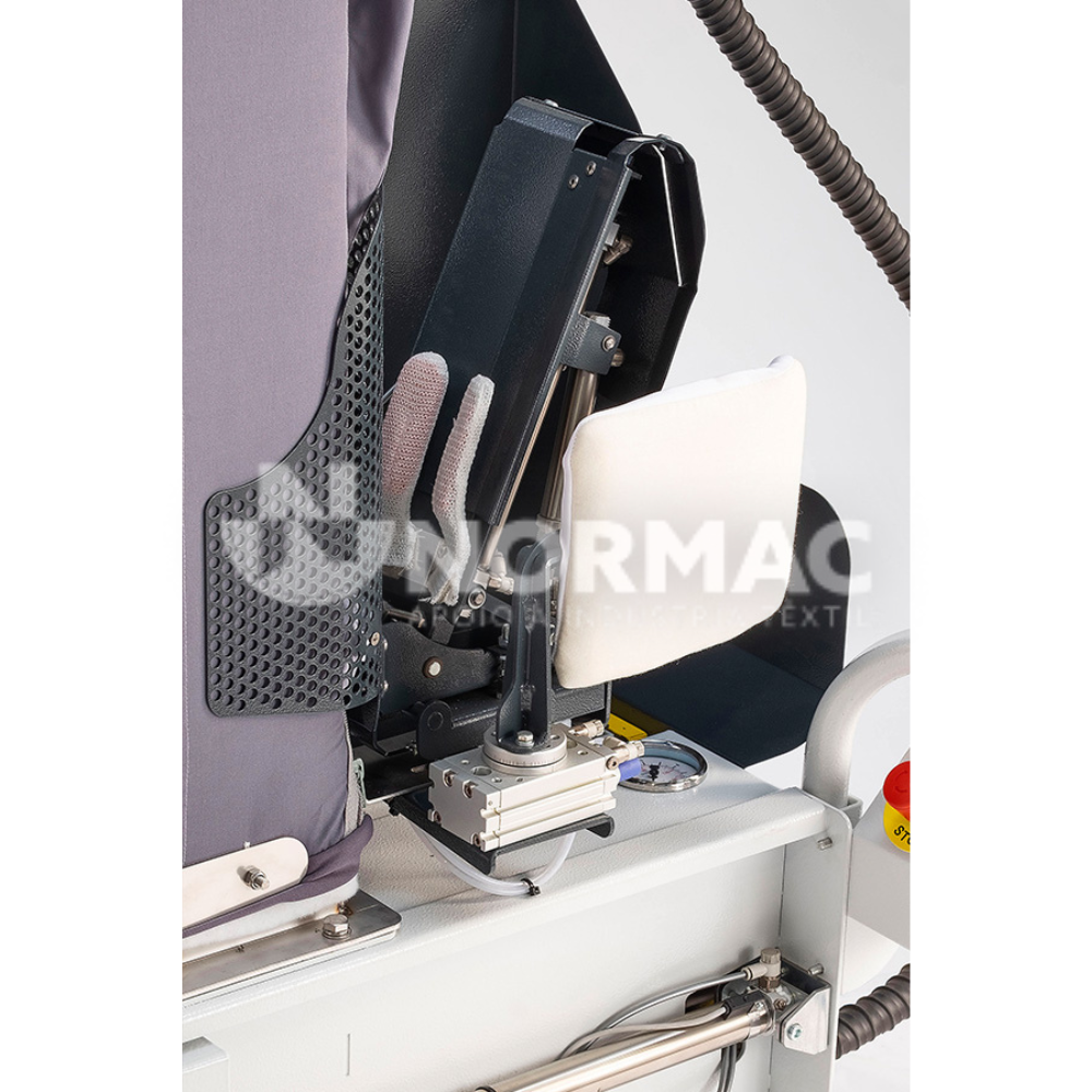 Uma prensa dupla automática para bolsos de camisa está disponível como opção, com operação integrada ao ciclo de passar.