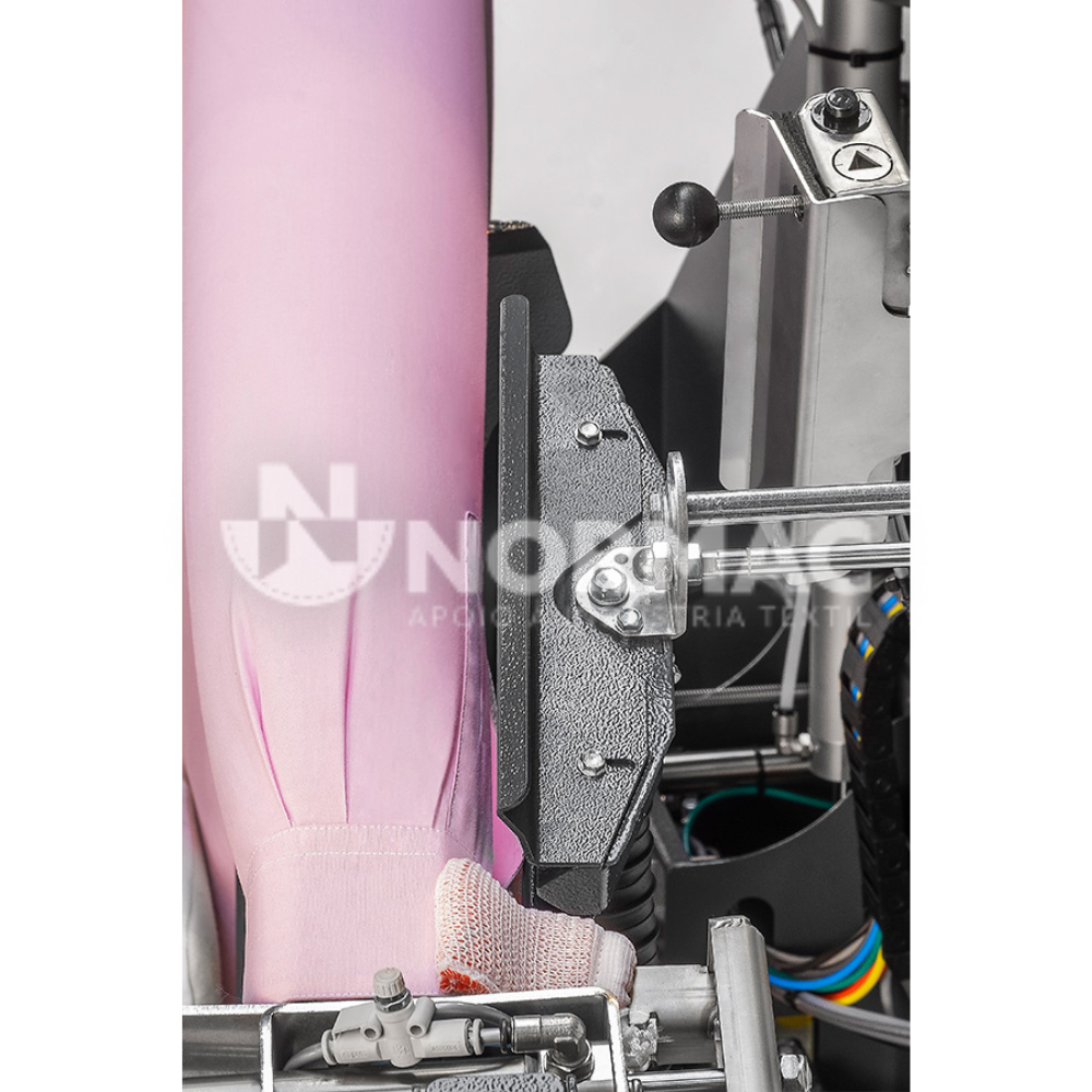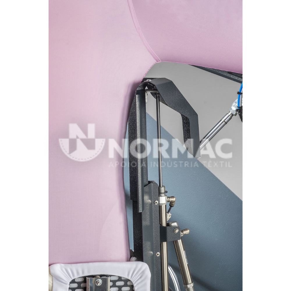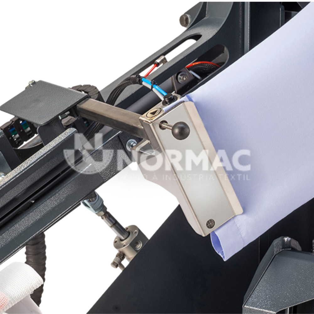• Carro tensor com cinco grampos para tensionamento perfeito e uniforme da bainha da camisa.