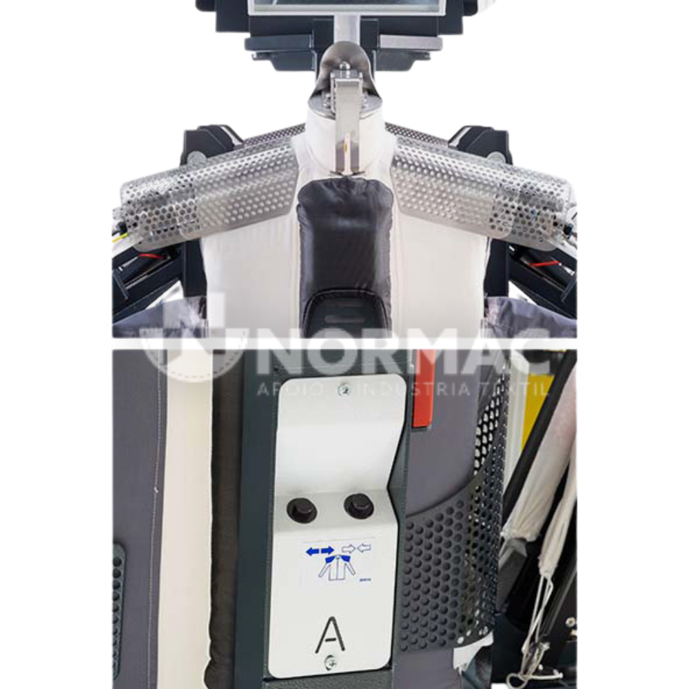 • Ajuste na largura dos ombros. Um elemento importante para obter um engomar perfeito das cavas, sem vincos em camisas grandes e sem marcas nos ombros em camisas pequenas.