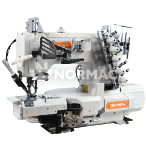 Máquina de Costura de Recobrir 3 agulhas com braço frontal para recobrir peças em fechado